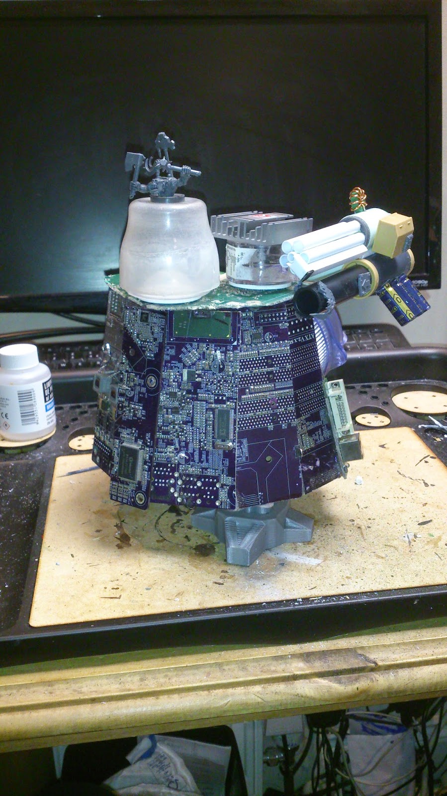 One weekend I decided I wanted to field a Stompa with my 40k Ork army. Rather than buy one I spotted an old PC and the PC Motherboard Stompa was born!